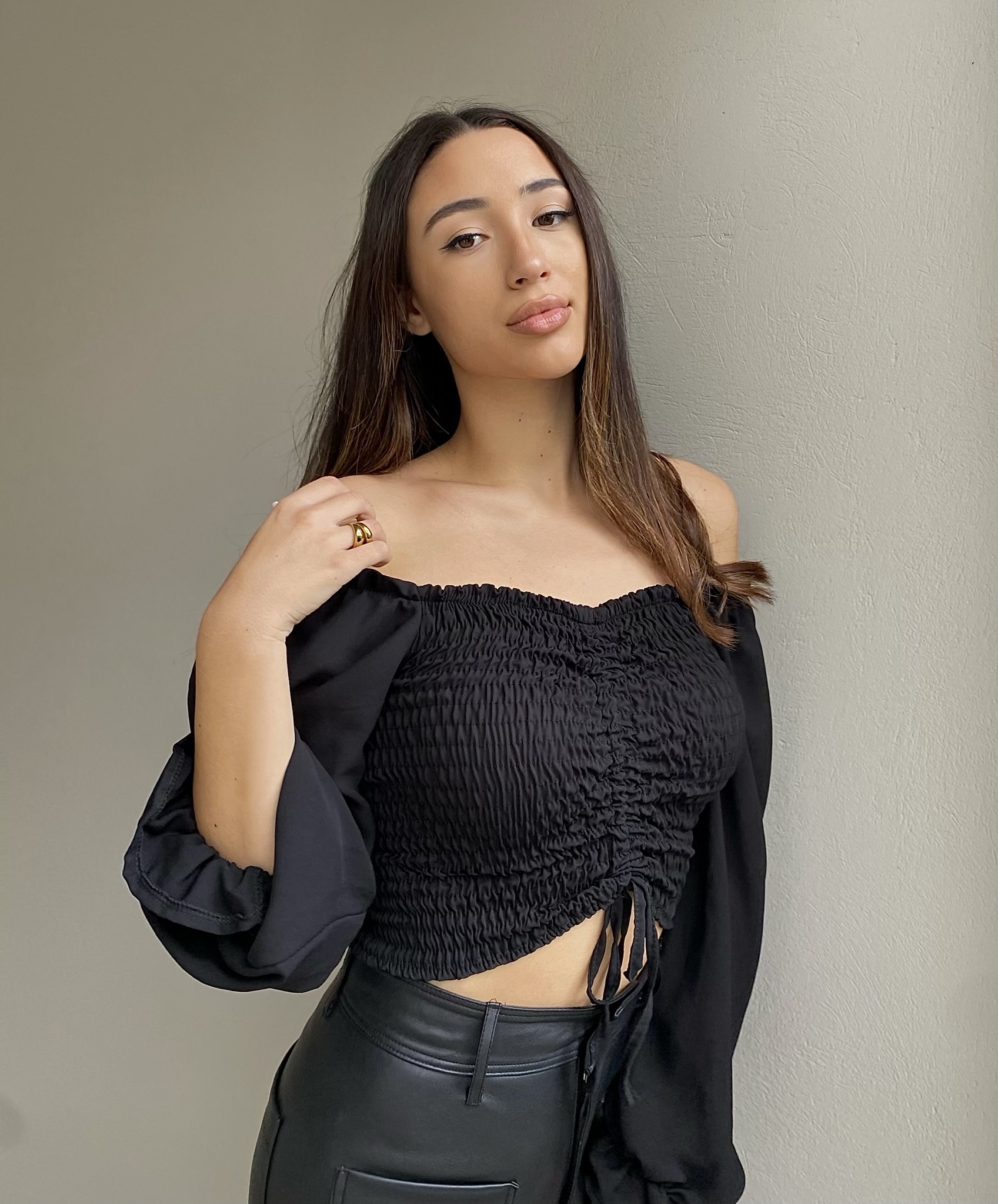 Μαύρο Must-Have Top με σφηκοφωλιά.