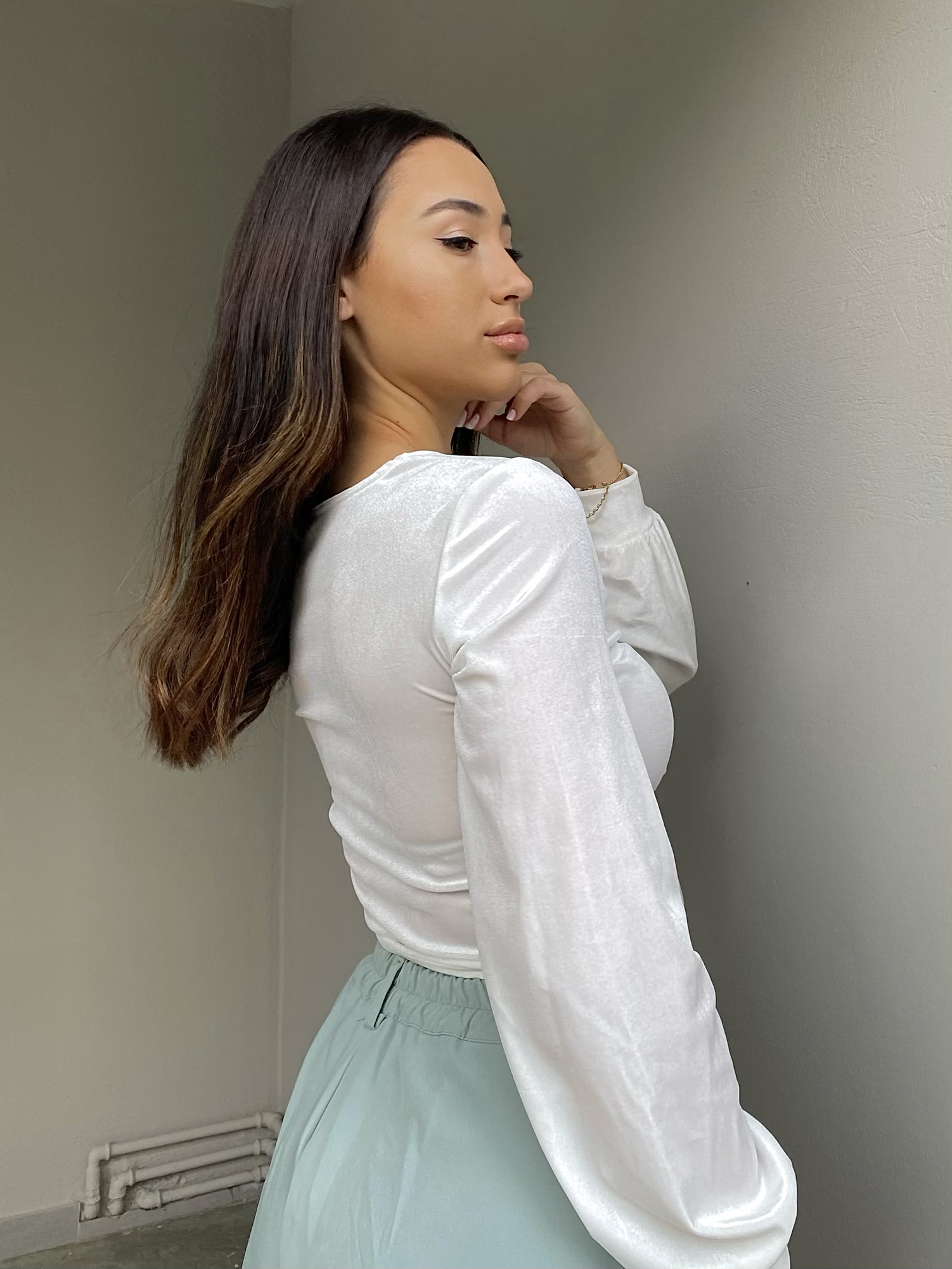 Βελουτέ top με σούρα στο μπροστινό μέρος.
